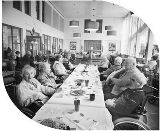 图为德国凯岩堡老年公寓的老人们在食堂一起享用下午茶。图片由德国凯岩堡老年公寓提供。
